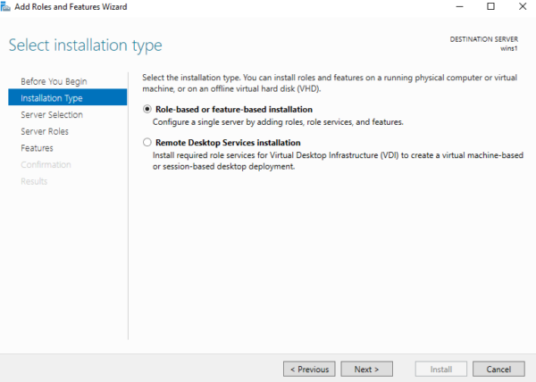 В разделе «Тип установки» (Installation Type) выберите установку на основе ролей сервера или на основе функции виртуальной инфраструктуры и нажмите Next, чтобы продолжить. В нашем случае используем первый вариант.