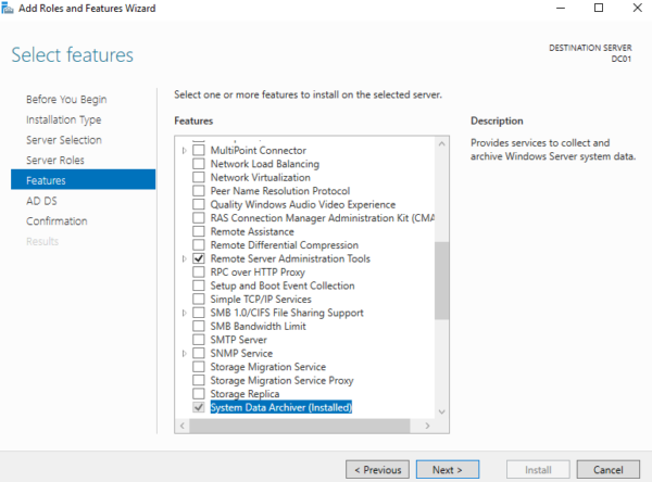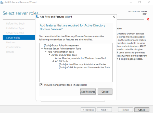 В разделе «Роли сервера» (Server Roles) выберите Доменные службы Active Directory (Active Directory Domain Services). После этого вам будет предложено добавить некоторые дополнительные функции. Нажмите кнопку Add Features, а затем нажмите Next, чтобы продолжить.