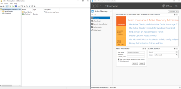 После перезагрузки ваш первый контроллер домена будет готов и вы можете пользоваться всеми функциональностями, таким как например ADUC и ADAC.